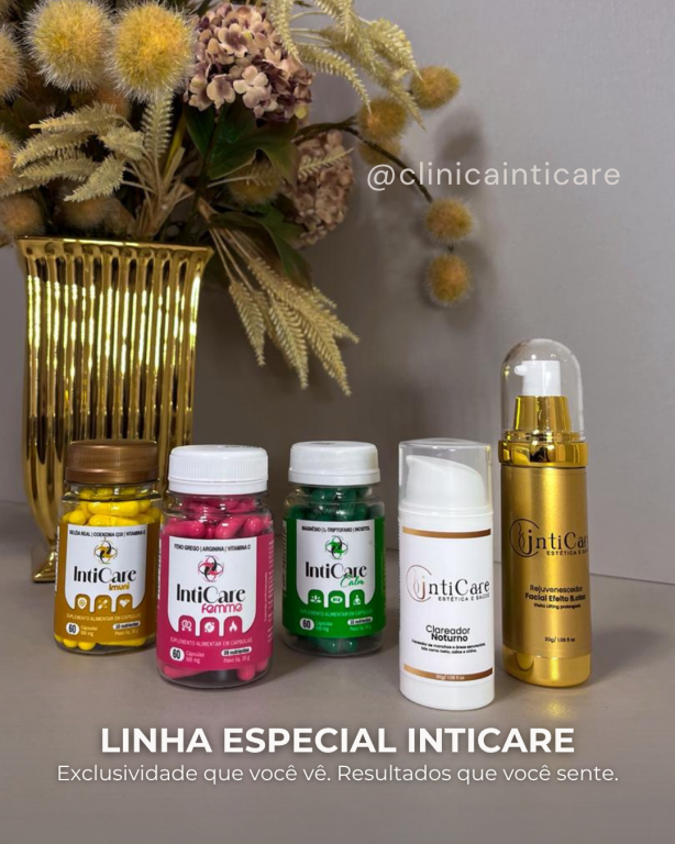 A Linha Inticare foi desenvolvida para ir além da estética. Unimos suplementação, dermocosméticos e tecnologia para promover resultados reais na sua pele, no seu corpo e na sua autoestima.